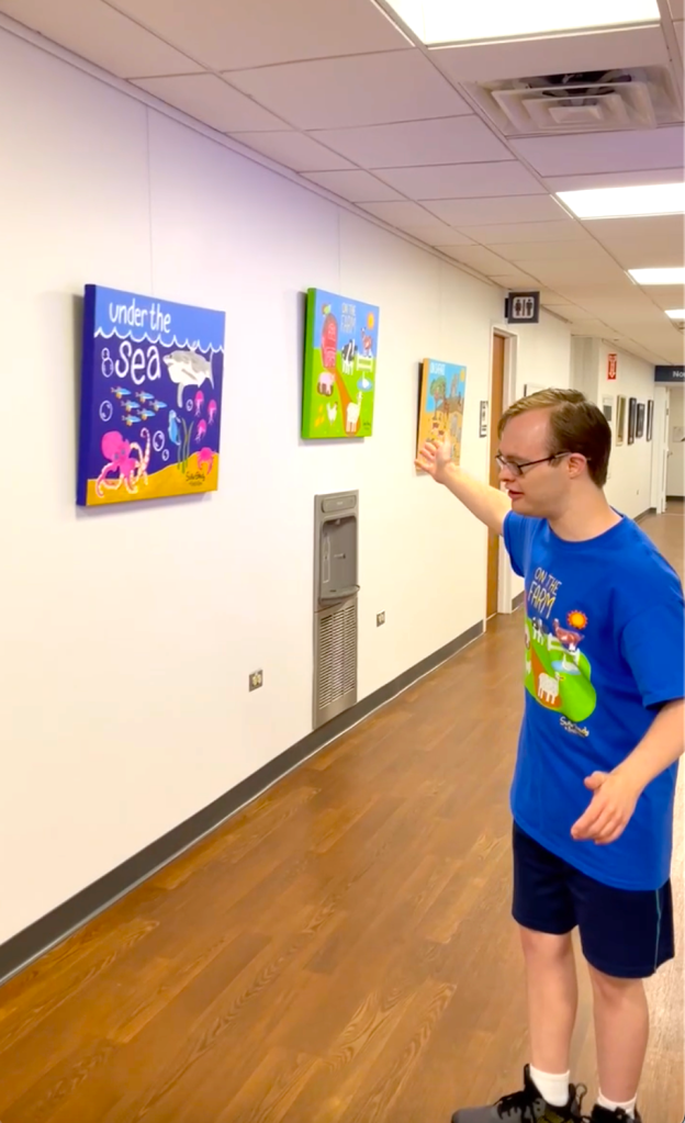 September 2024. Three SuperBrady Art Prints are chosen for the Healing Hallways of Art Exhibition at Northern Westchester Hospital. For the next year, Brady’s artwork will be hanging in the same hospital where he was born and received his Down syndrome birth diagnosis. Look how far he’s come! He hopes his artwork might give other new parents, at the hospital receiving unexpected news, some hope and encouragement that a diagnosis does not define who their baby is or what their future holds.