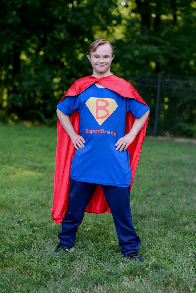 A SuperBrady Author Assembly consists of SuperBrady arriving in his signature “B” shirt and red cape. Brady reads his book displayed as a presentation on a smart board. Then along with a sidekick (sibling or mom), they educate the students about inclusion and share SuperBrady’s tips on how anyone can become a Superhero of Inclusion. SuperBrady then opens it up to student questions.