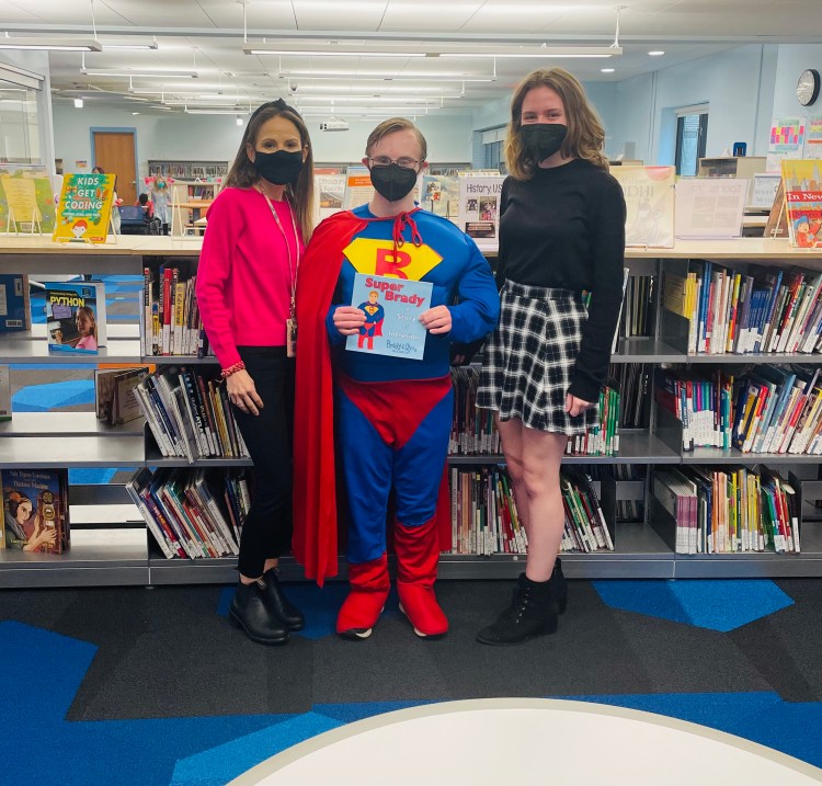SuperBrady and Alexx donated a book to their own elementary school, Westorchard.